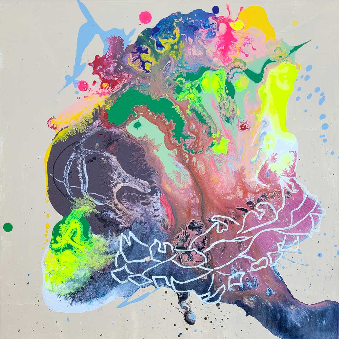 Change as a principle of life is at the center of Petra Kost’s series “Please Change.” Inspired by the philosophical concept of “panta rhei” (everything flows), she playfully and precisely creates works in a uniform 40 x 40 cm format that can be combined and rearranged in many ways. The potential for constant reordering becomes an artistic statement in itself. The viewer becomes an active part of this transformational process. The series celebrates change as an expression of openness and honors the vibrant beauty of ongoing transformation.